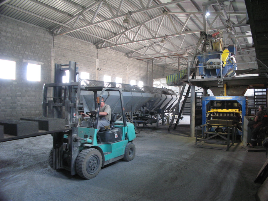 Производство блока: рифей буран полностью автоматизирован ипроизводит 5600 блоков в смену, бункеры-накопители с электронной автоматической подачей.