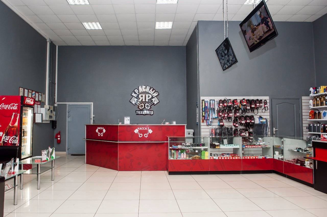 Также имеется ресепшен с зоной отдыха для клиентов, совмещенный с магазином, склад автозапчастей, помещение для персонала.