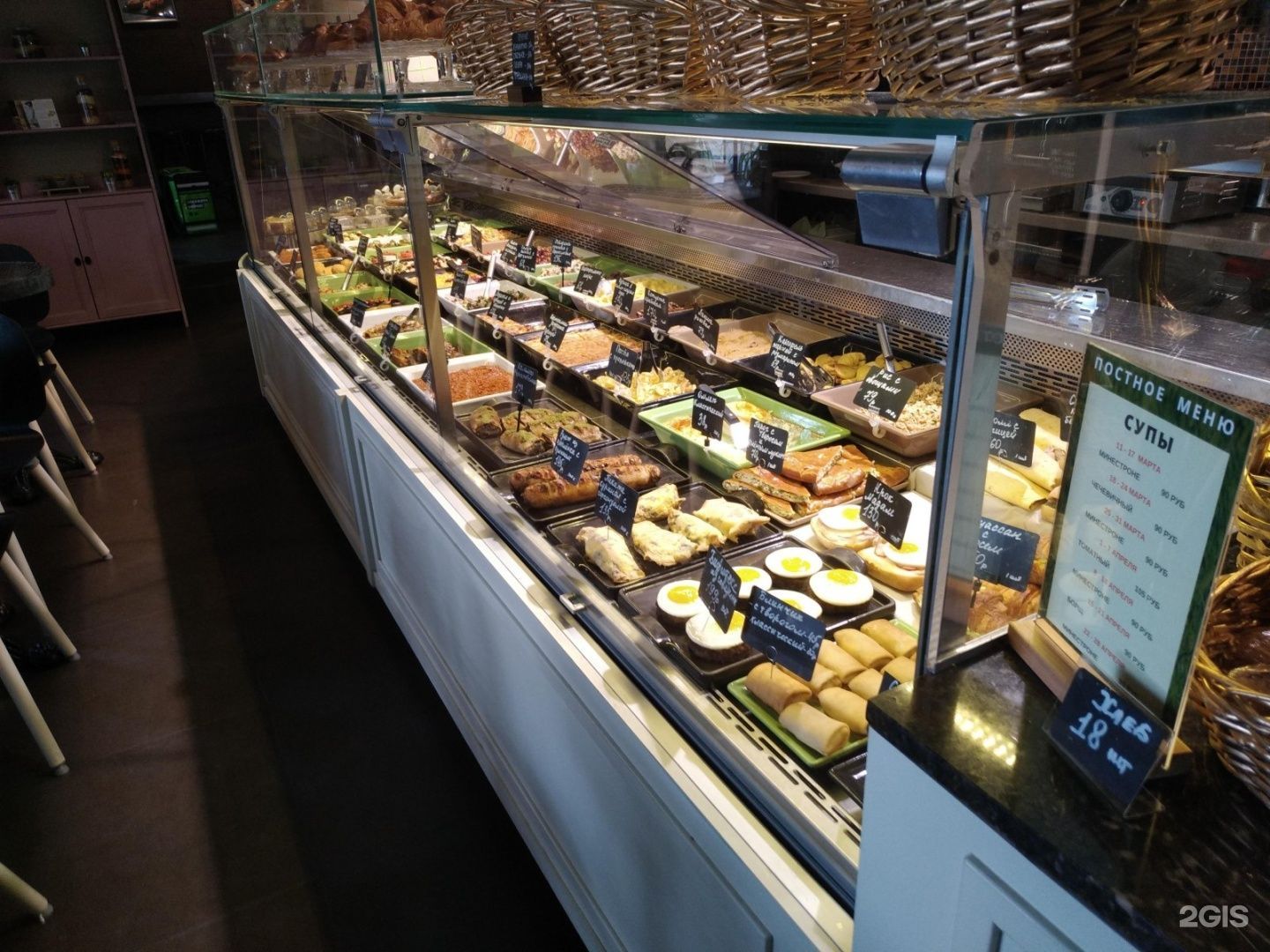 Кафе-кулинария с посадочными местами на первом этаже бизнес-центра.