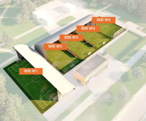 1. Крытый манеж (80м х 35м х 12,5м). В манеже 4ре мини-футбольных поля (в т.ч. с возможностью разделения под разные форматы и размеры полей)