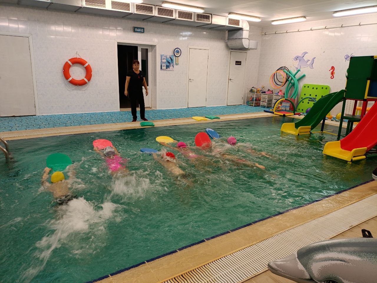 - Площадь помещения 95 кв.метров, на ней располагается: входная зона, ресепшен, игровая детская зона, зона ожидания, комната персонала, взрослый туалет, раздевалка, детский туалет, техническая работа комната, 2 душа(для малышей высокий, и низкий для более взрослых детей), зона бассейна