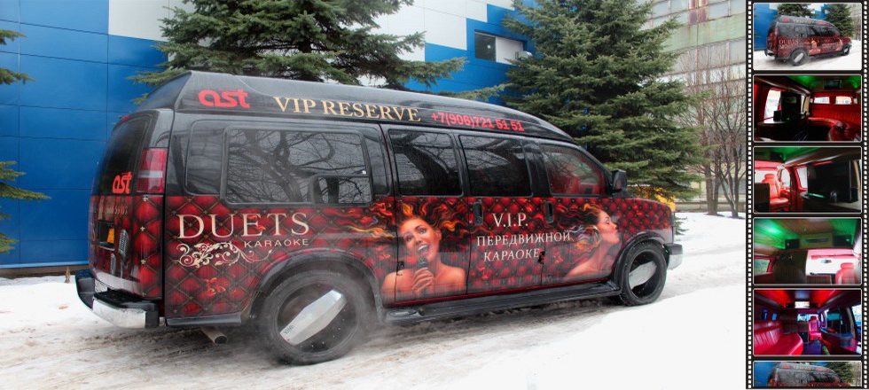 В продажу поступил эксклюзивный бизнес: Караоке клуб «на колесах». Первый и единственный проект в России. Караоке-мобиль сделан на базе автобуса GMC Savana. Выполнен эксклюзивный тюнинг от VIP Car Service: отделка кожей и натуральным деревом, установлена студийная аппаратура премиум класса SOUND-ART-SYSTEMS, караоке система AST, генератор льда и ведерко для шампанского.