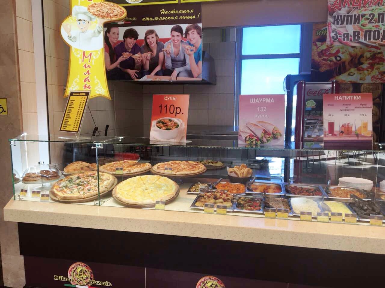 Кафе-пиццерия находится в крупном ТРЦ у метро.
