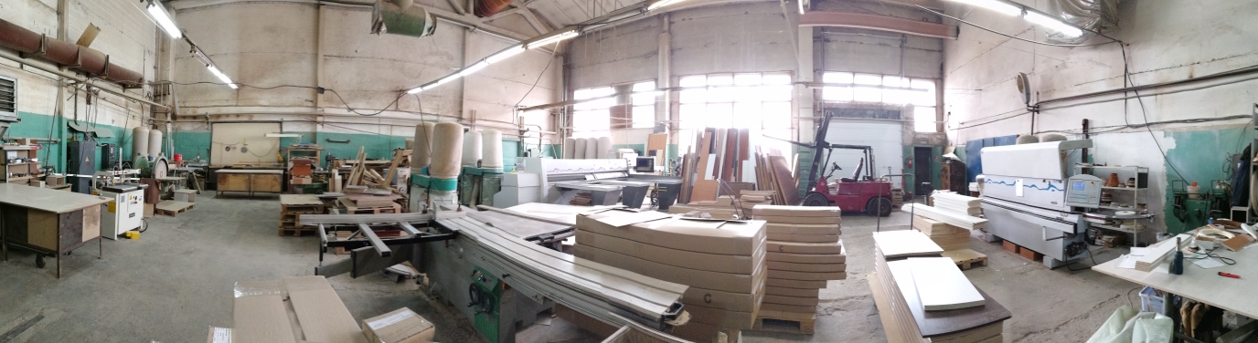На производстве есть все необходимое для работы оборудование (автоматизированный распилочный центр, кромочный станок, погрузчик и т.д.)