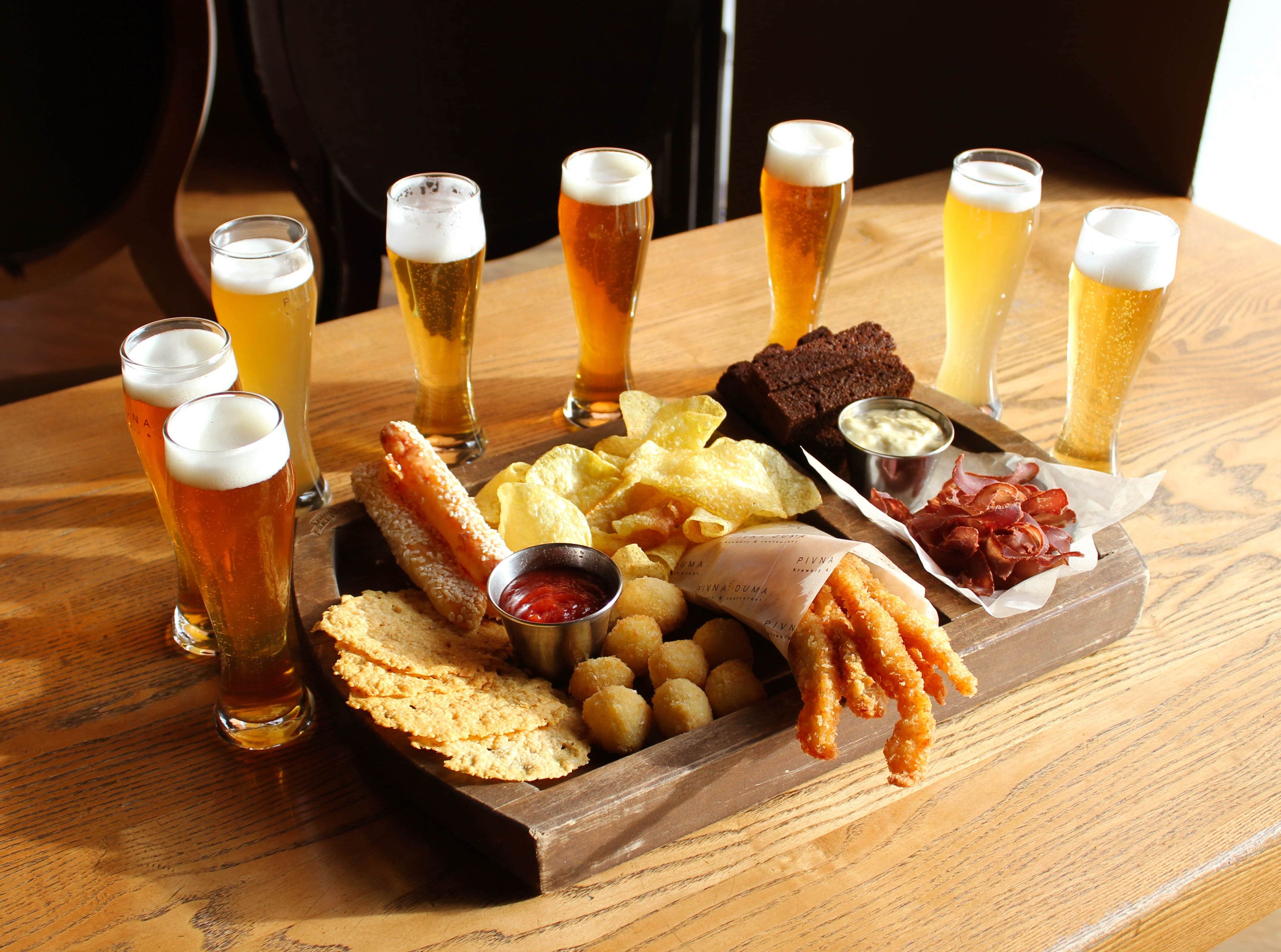 Представлен широкий ассортимет алкогольных и безалкогольных напитков. Установлена вытяжка, есть кухня, где готовят закуски: картофель фри, сырные палочки, луковые кольца, рыба, гренки и многое другое.