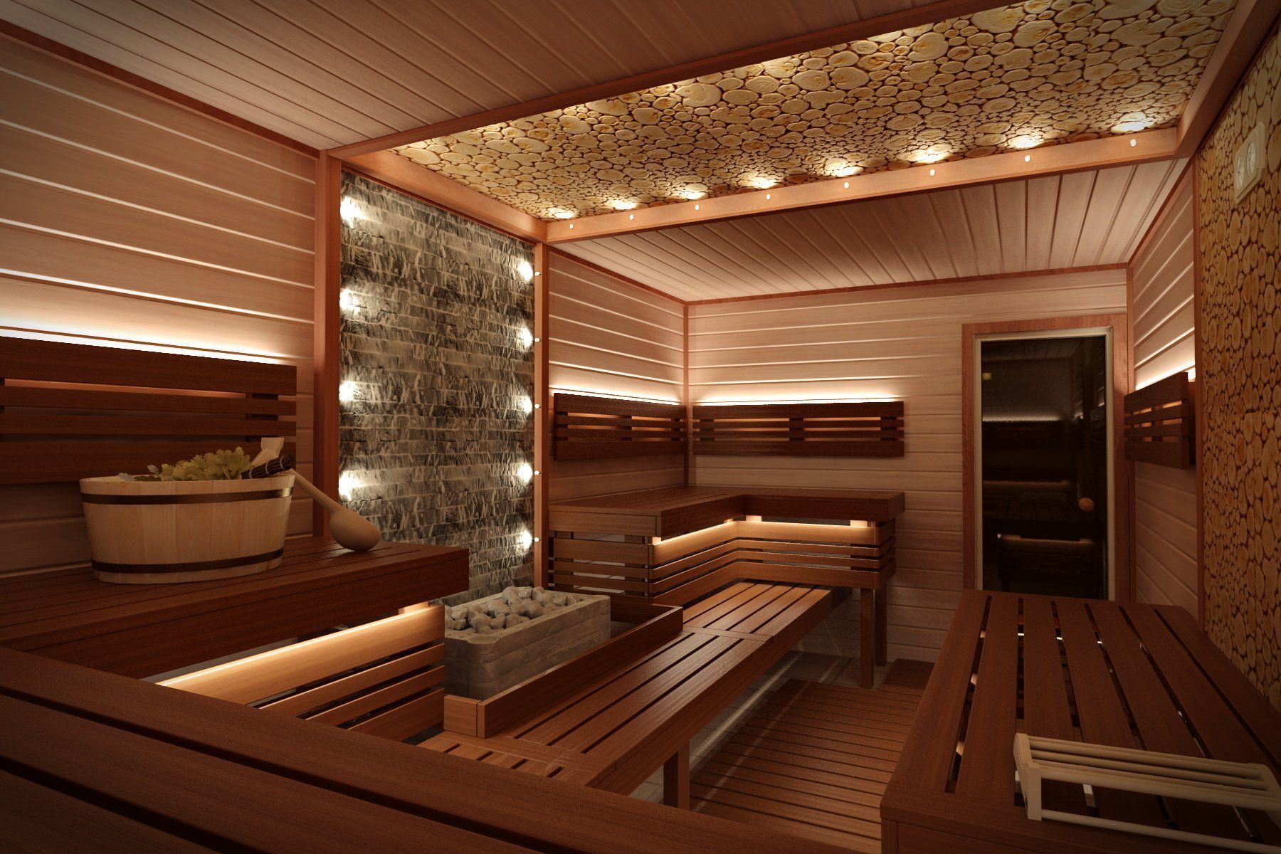 На нулевом этаже большая сауна до 20 человек, с большим бассейном, вентиляцией и системой очистки воды. Полностью оборудована всем необходимым.
