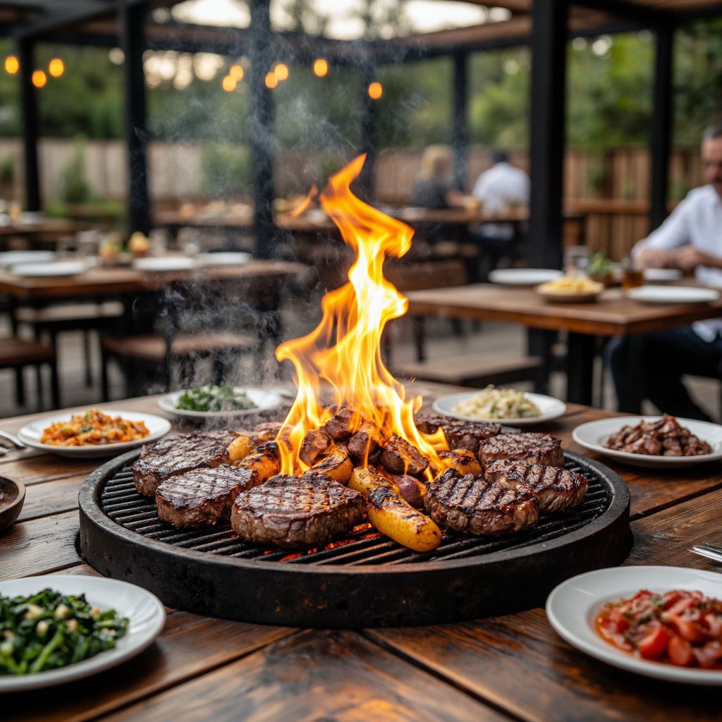 Огромным преимуществом в выборе (где перекусить?) за счёт мангальной зоны и открытого огня.