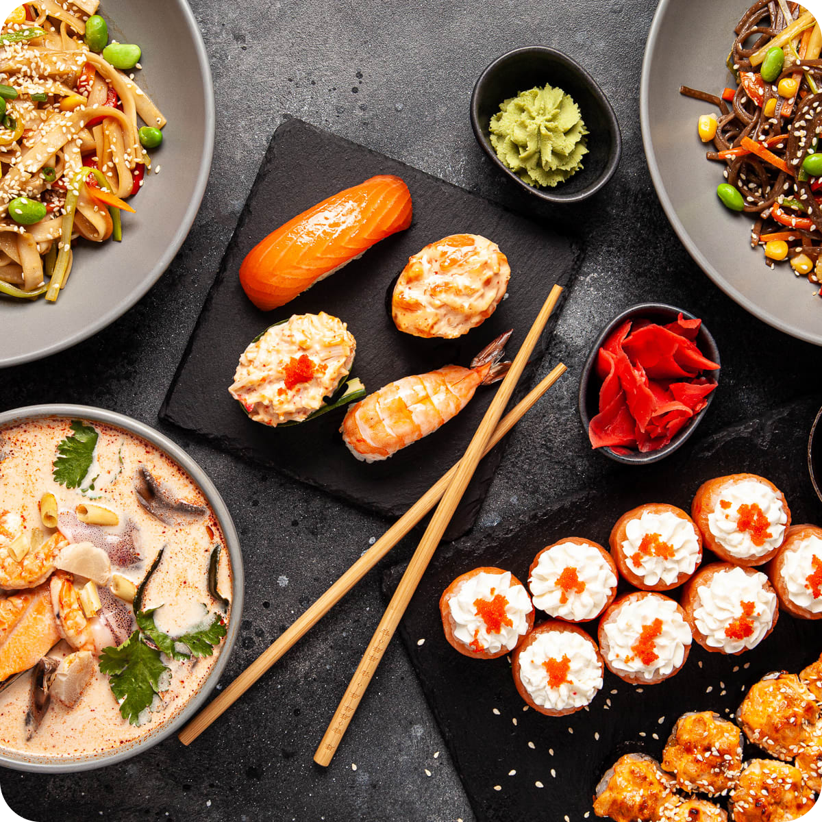 Направление заведений: доставка еды ( роллы, суши, напитки, сэндвичи), шаурма и хот-доги, кофейня-кондитерская.