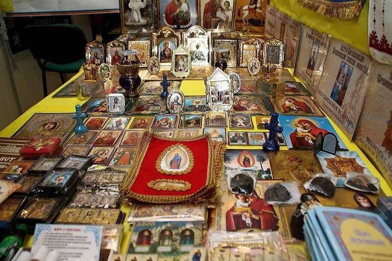 Основные продажи: иконы, полки для икон, ювелирные изделия (крестики, цепочки), храмовая утварь.