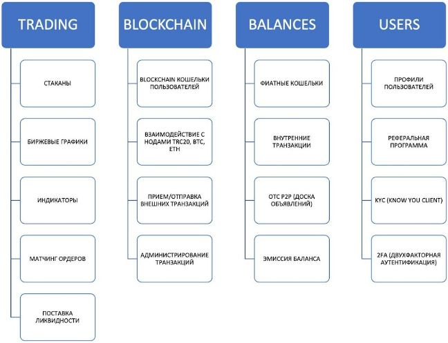 Технологический стек биржи обеспечивает высокую стабильность и производительность: