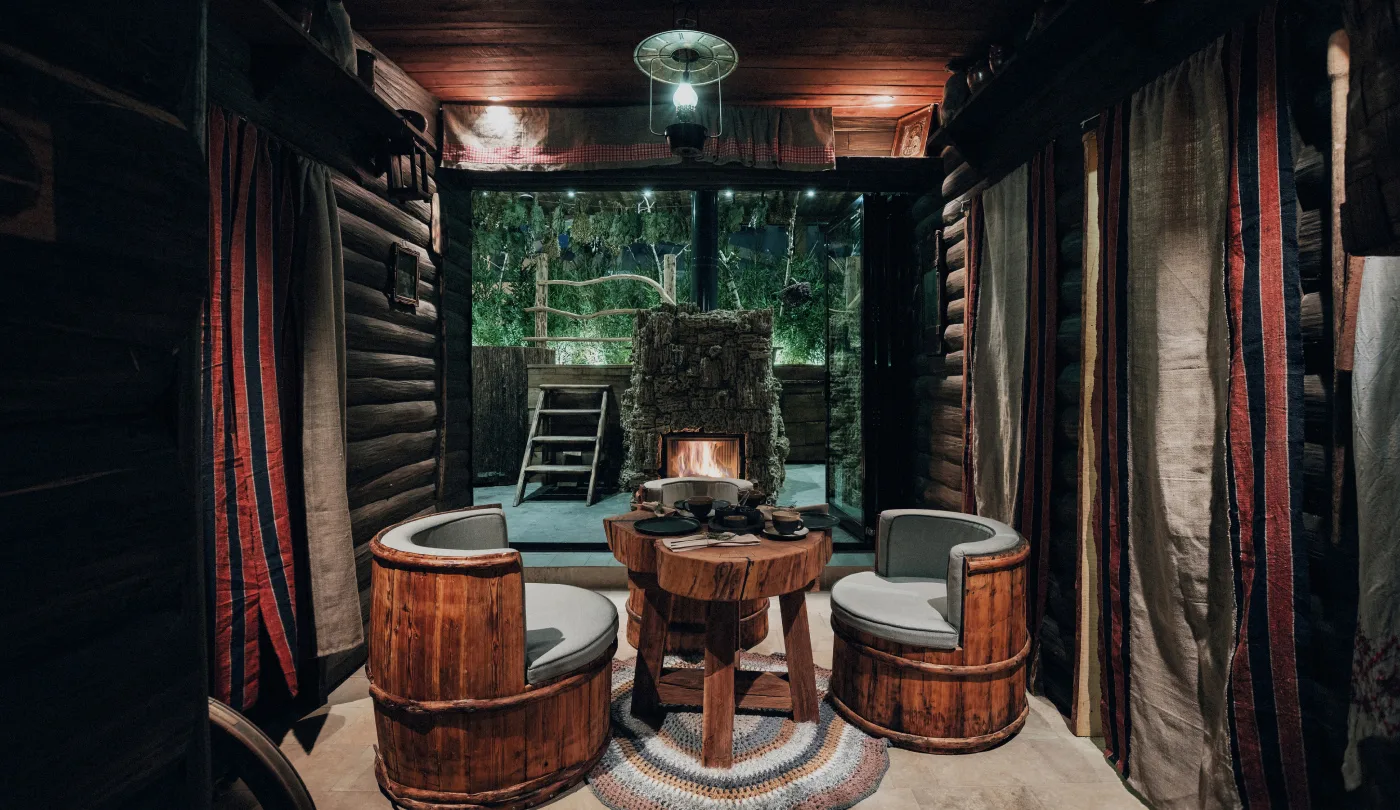 - Барная зона в тематике охотничьего клуба