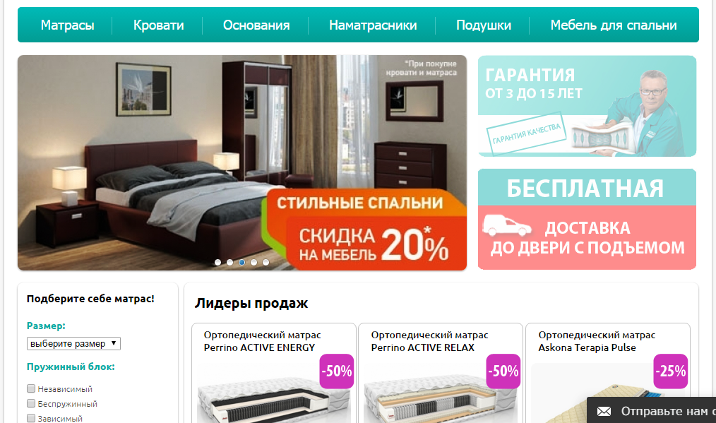 Продается готовый бизнес — интернет-магазин матрасов и мебелиГотовый и работающий бизнес по продаже матрасов и мебели. Есть вся статистика по продажам за прошлый год работы и расходы по рекламе.Вся работа налажена. За время работы накоплена база клиентов из 5000 человек. Собрана вся статистика, зафиксированы все продажи по каждому дню. В статистике номера клиентов, адреса доставок, сумма заказа.Доставка осуществляется через курьерскую службу. Есть статистика по рекламной компании за все время работы. Полная детализация входящих вызовов.Передаются все контакты по данному бизнесу и договора с поставщиками на льготных условиях.Собственник готов оказать свою поддержку новому собственнику в течение одного-двух месяцев со дня продажи.Причина продажи — переход собственника в другую сферу деятельностиЗвоните! Дополнительная информация по телефону
