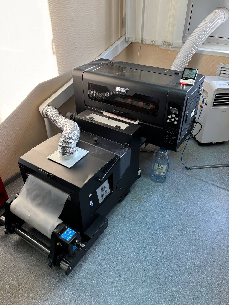 - DTF-принтер 33 см (2 печатающие головы XP-600) — пробег 7 рулонов