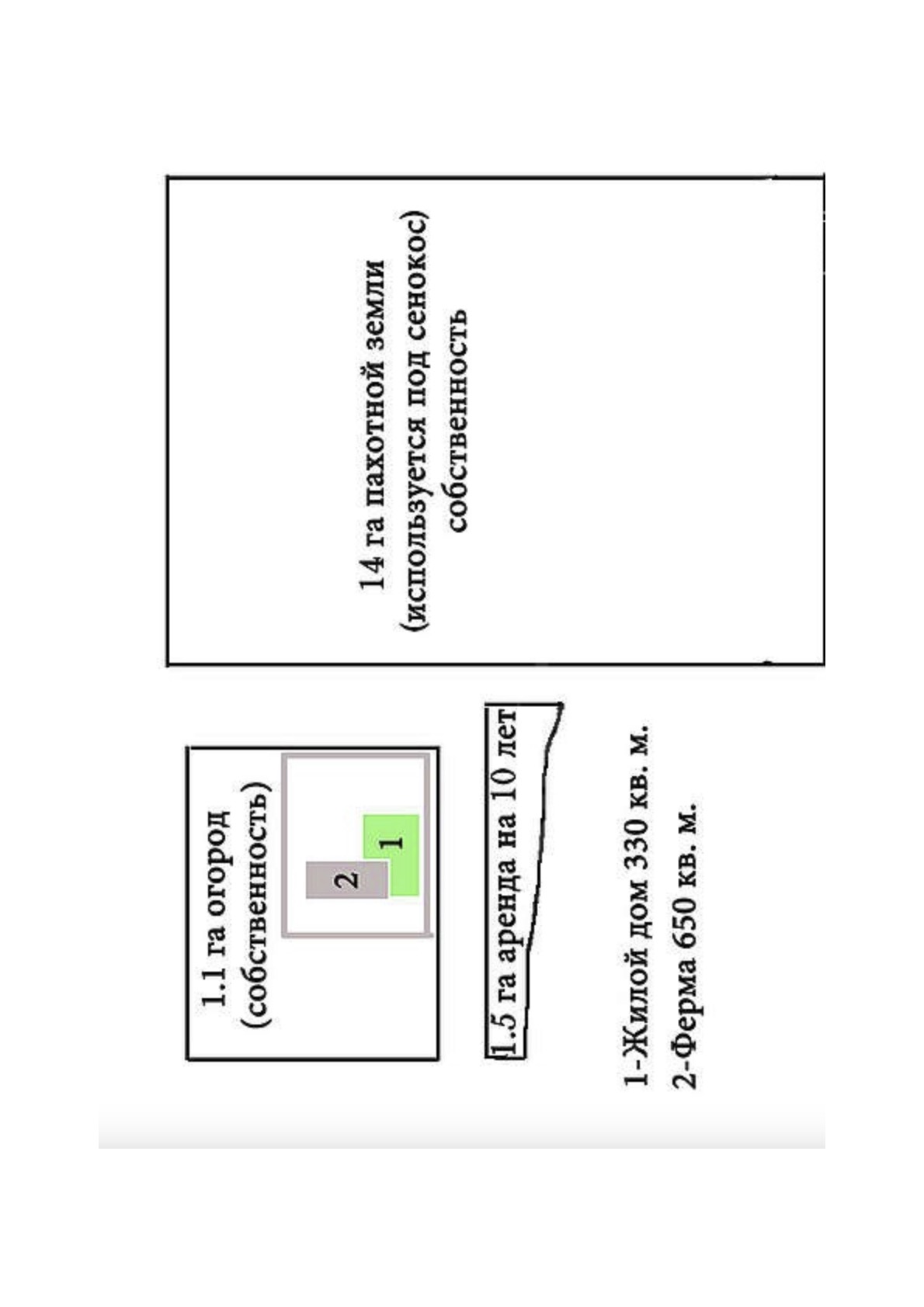 1. Животноводческая ферма S= 650 кв. м (одноэтажное здание)