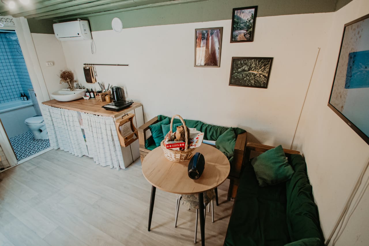 Продаётся готовый арендный бизнес - уютный дом для сдачи в аренду, расположенный на земельном участке, разделенном на две части. Первая часть представляет собой гостевую зону, где расположен дом площадью 18 квадратных метров с мансардой и террасой. Внутри дома есть 4 спальных места, включая кровать и диван-трансформер, а также все необходимые удобства. Кухонная зона оборудована раковиной, плитой, холодильником, микроволновкой и полным комплектом посуды для удобства приготовления пищи.