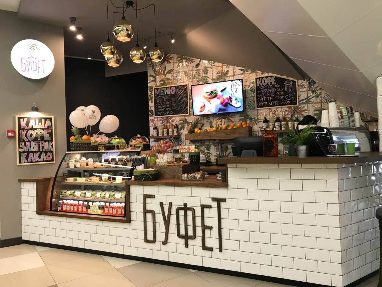 Привлекательное и уютное помещение, идеальное место для перерывов и обедов среди бизнес-людей и студентов.